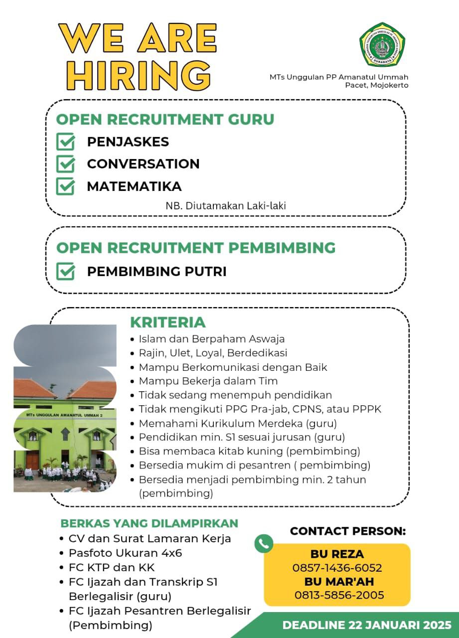 Amanatul UmmahGuru penjaskesGuru conversationGuru matematikaPembimbing...