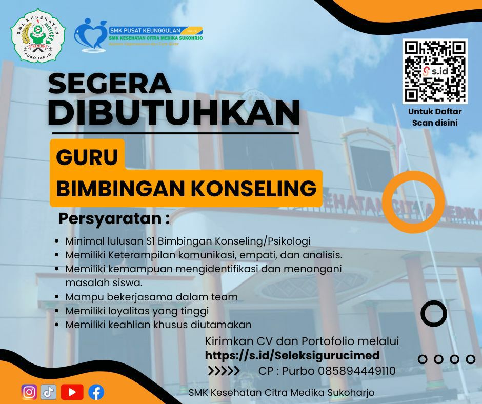 Dibutuhkan Segera Guru Bimbingan Konseling di SMK Kesehatan Citra Medi...