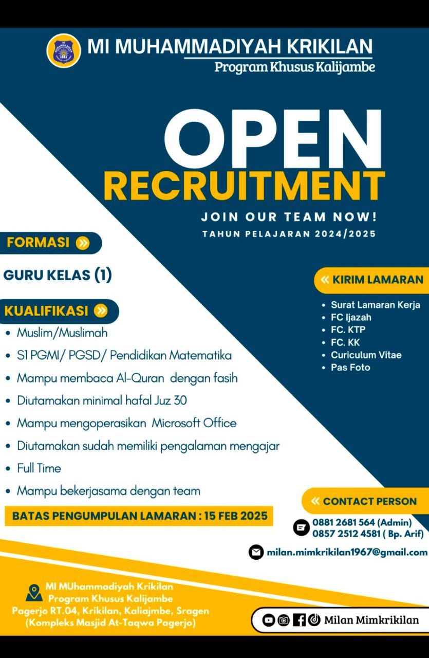 MI MUHAMMADIYAH KRIKILANPROGRAM KHUSUS KALIJAMBEEmail : milan.mimkriki...
